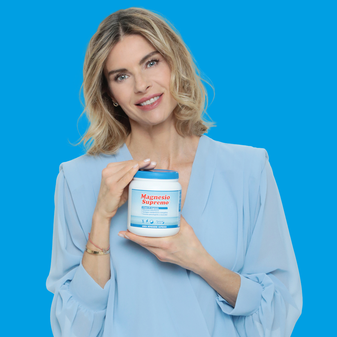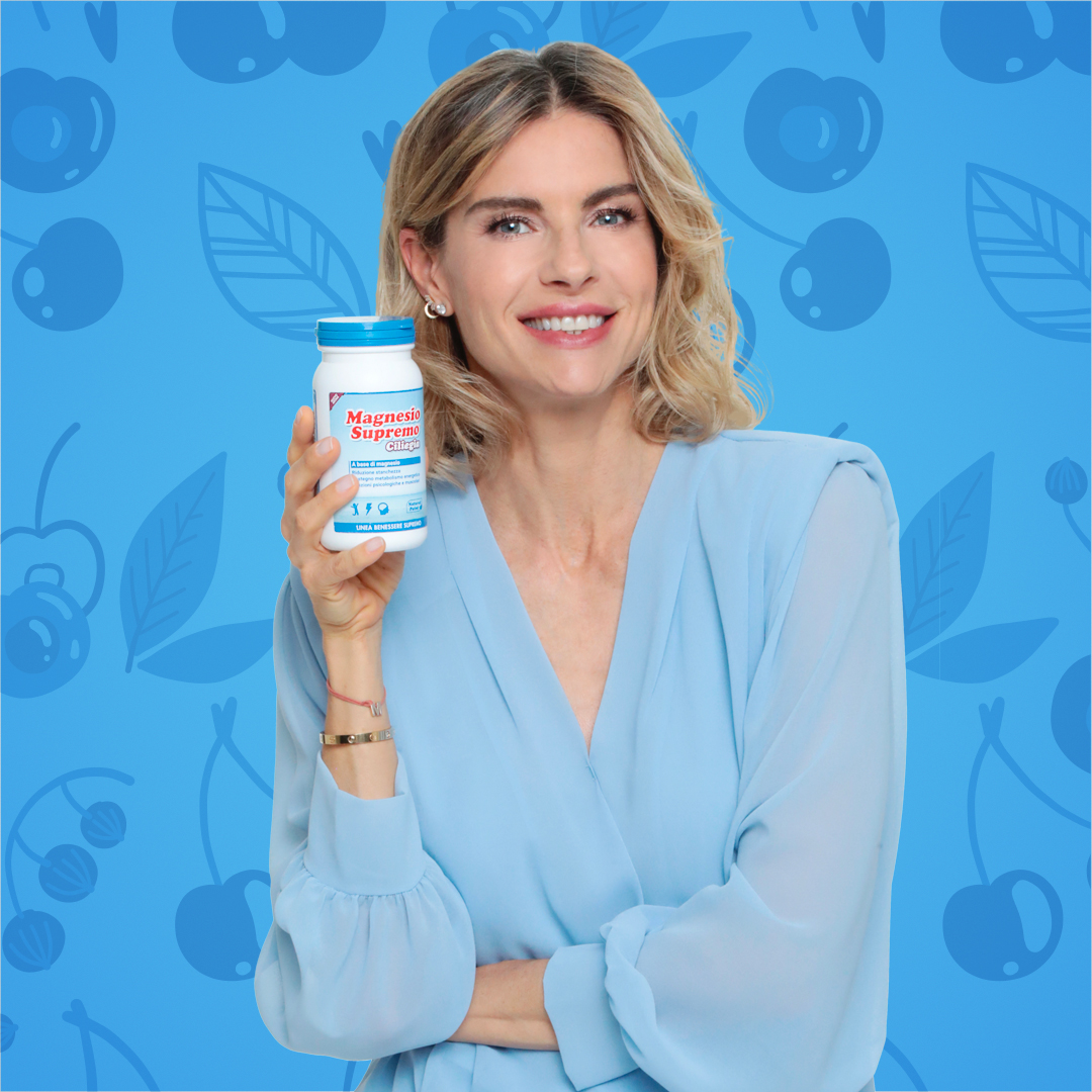 Dal 2021 diventa la testimonial di Magnesio Supremo grazie alle sue note passioni per il benessere e la forma fisica, arricchite da un autentico percorso d’arricchimento spirituale, di consapevolezza personale e di responsabilità verso l’ambiente, in linea con i valori del nostro brand.
